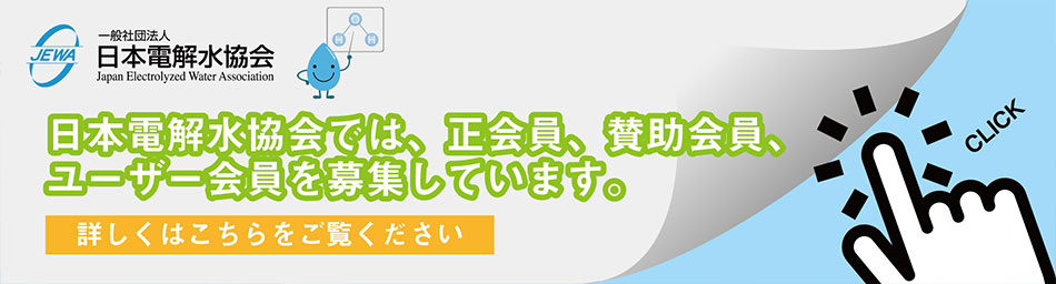 「電解水Q&A 応用編」・「次亜塩素酸水のガイドライン」・「ウイルス不活化データ」等の詳細な情報の閲覧については、JEWA会員への登録が必要となります。